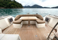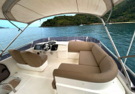 - Piloto automático Raymarine | Radar Raymarine | Display GPS Raymarine hybrid touch | Bowthruster | Farol controle remoto | Guincho de âncora elétrico | Flaps hidráulicos | Teka no cockpit e plataforma de popa | TV no salão | TV na cabine master | Bimini no fly | Antena Sky | Banco copiloto no comando do salão | Domo | Suporte em inox para bote | Carreta de encalhe |